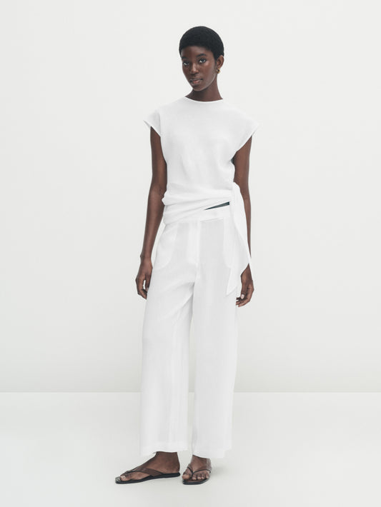 LINEN BLEND WIDE-LEG TROUSERS WITH DARTS